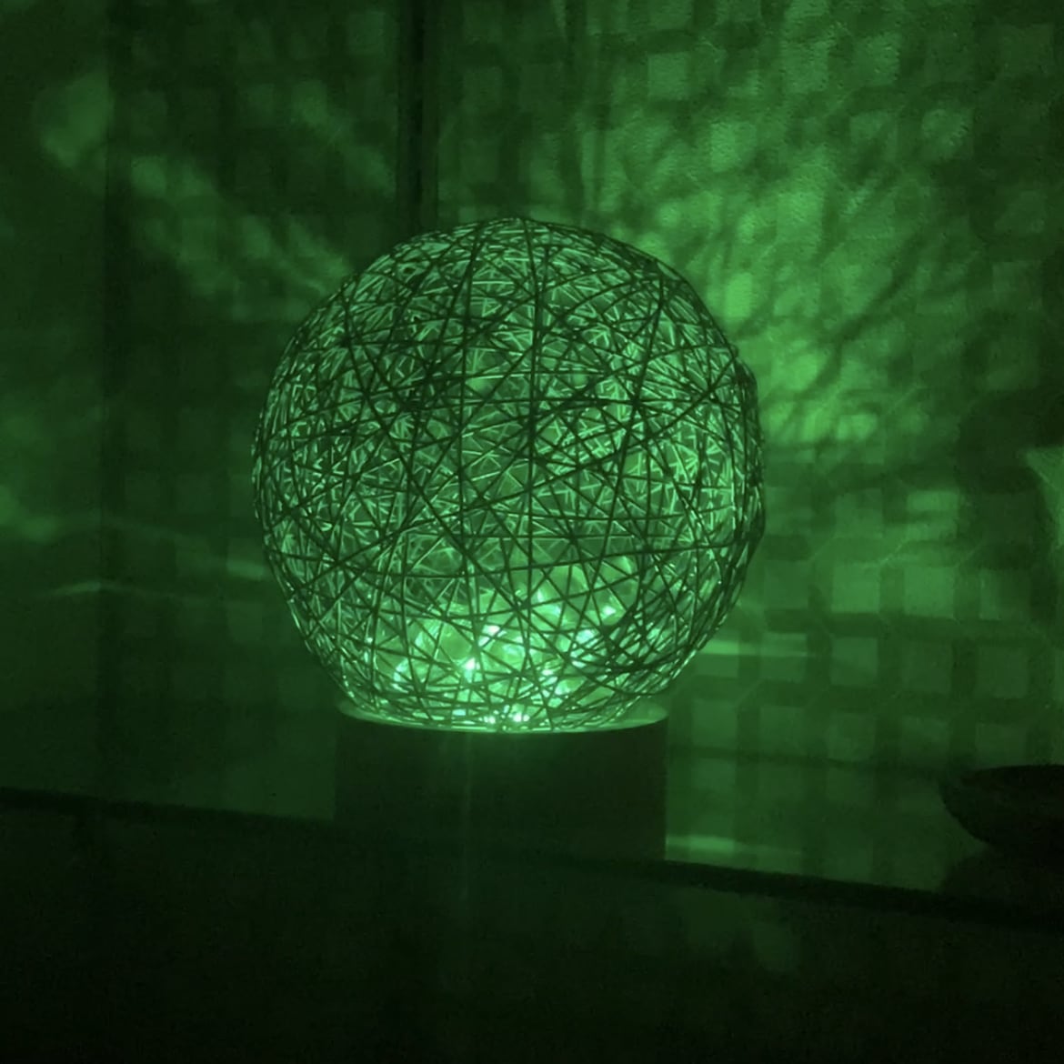 球体のシェードは紙バンドを使って丁寧に編み上げ、幻想的な光と影を生み出します。和室にも洋室にも自然となじみ、空間に優しい彩りを添えます。