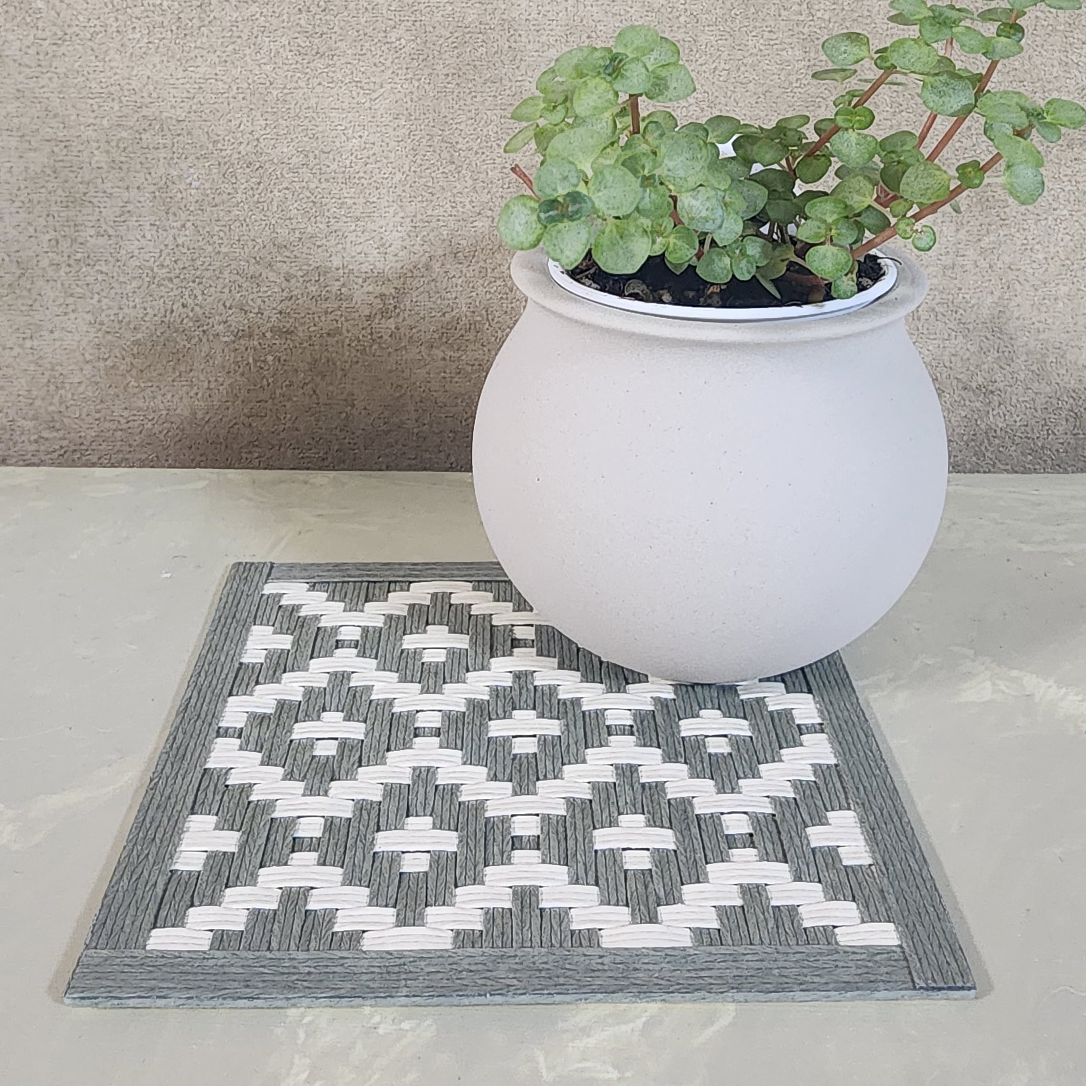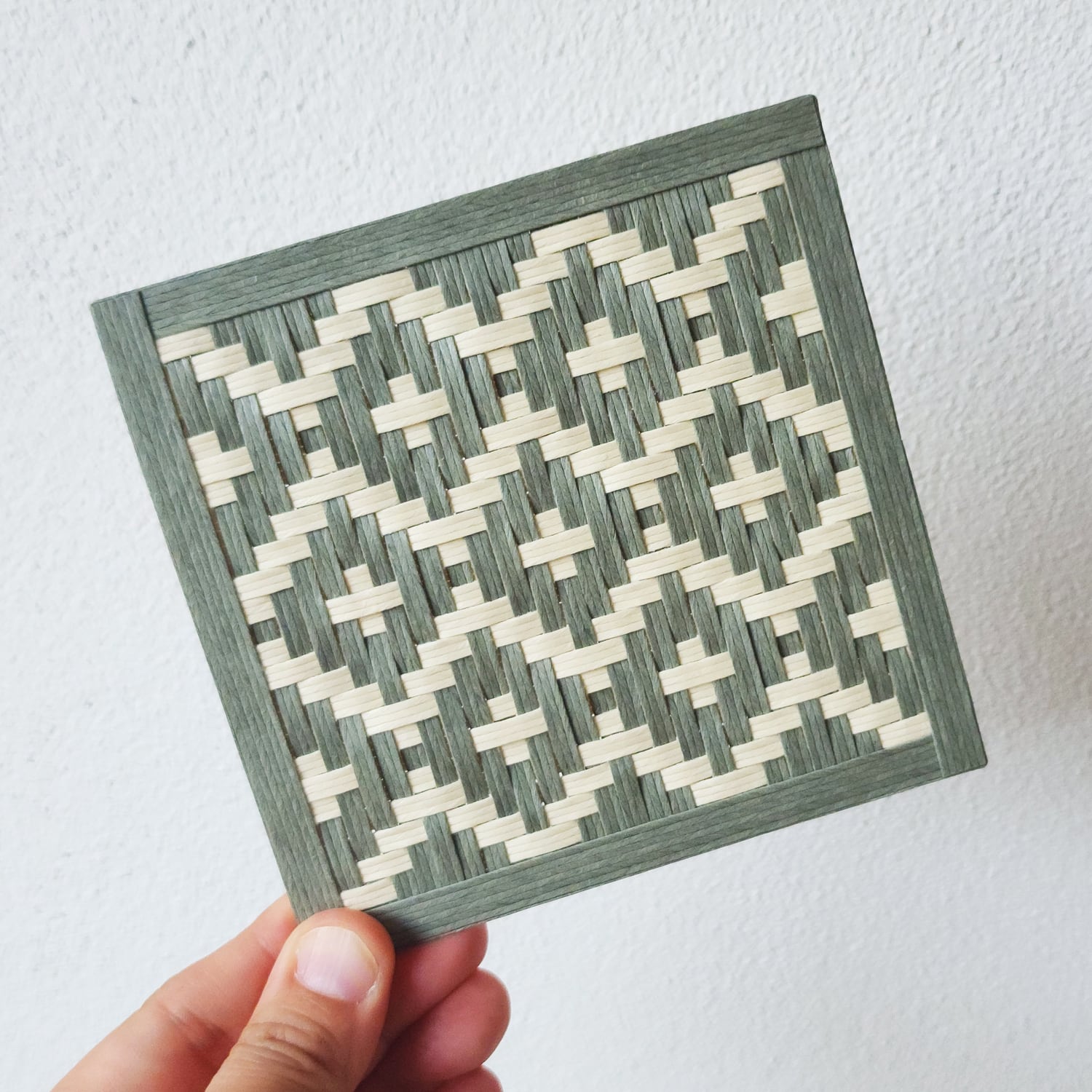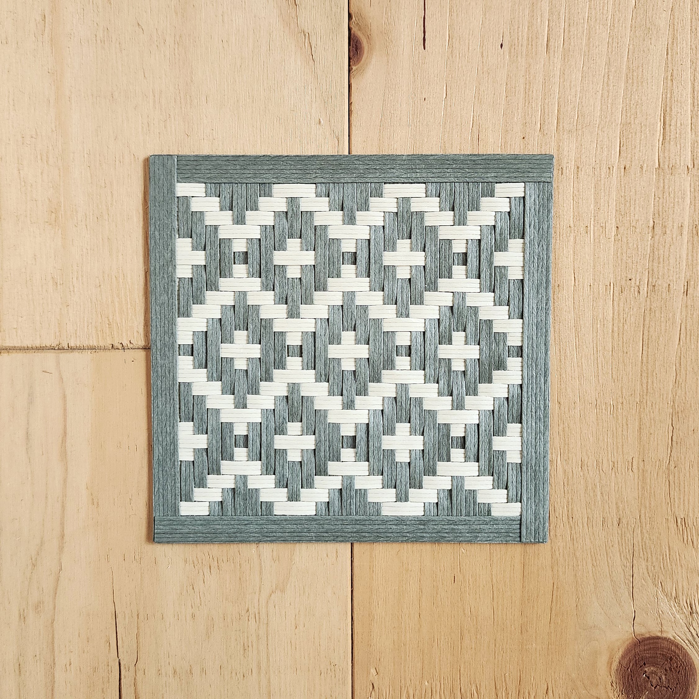 紙バンド/クラフトバンド/七宝文様/七宝編み/リバーシブル/コースター/鍋敷き/和モダン/幾何学模様/ナチュラルカラー/くすみグリーン/クリームカラー/縁起柄/日本製/ハンドメイド